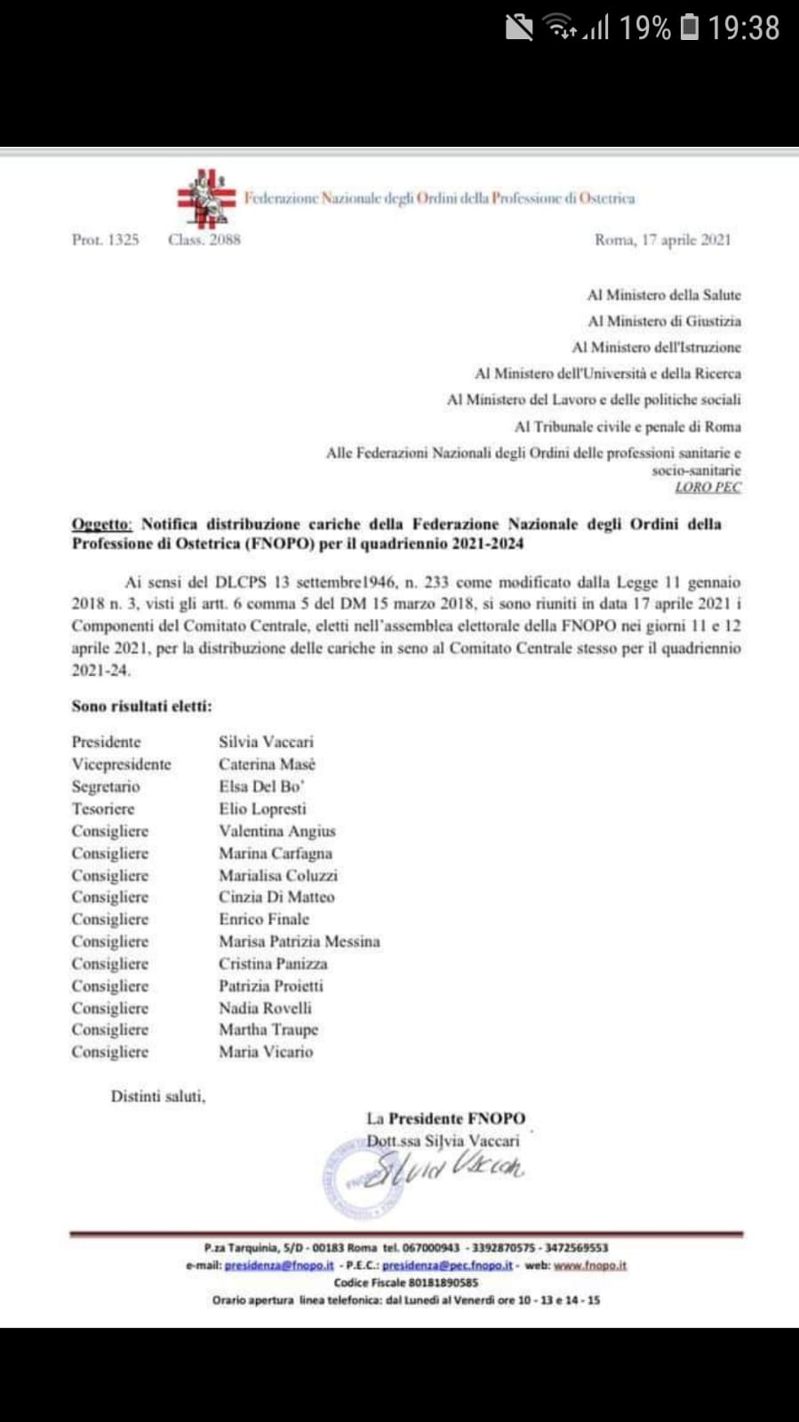 Notifica distribuzione cariche della FNOPO per il quadriennio 2021-2024